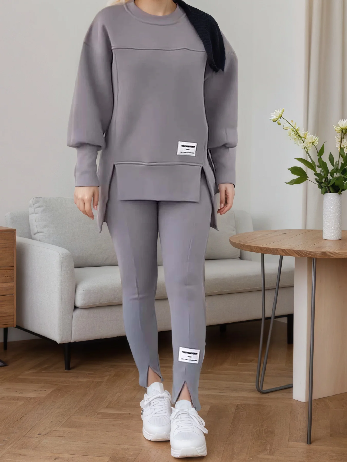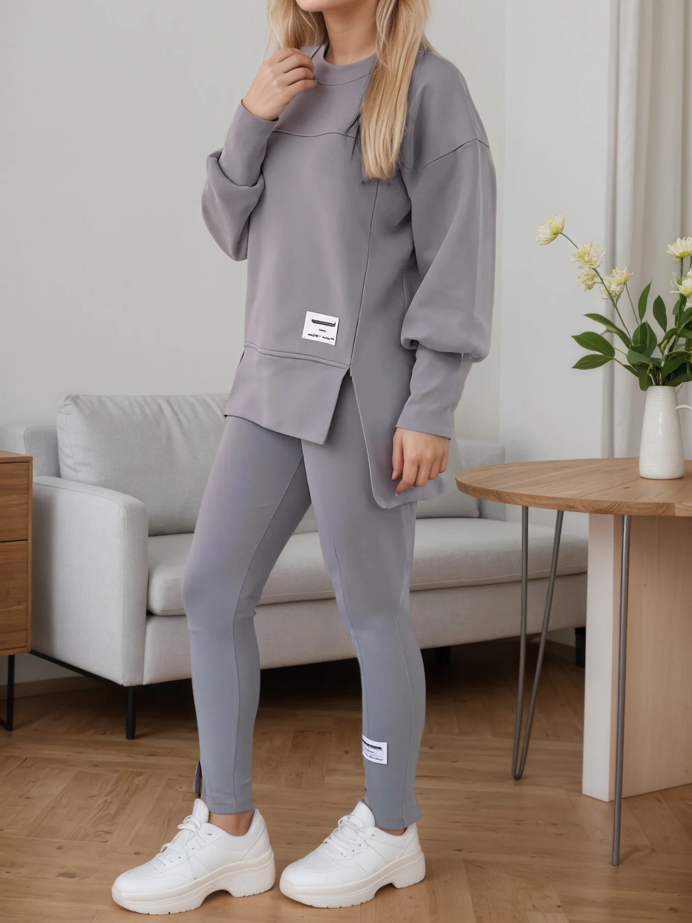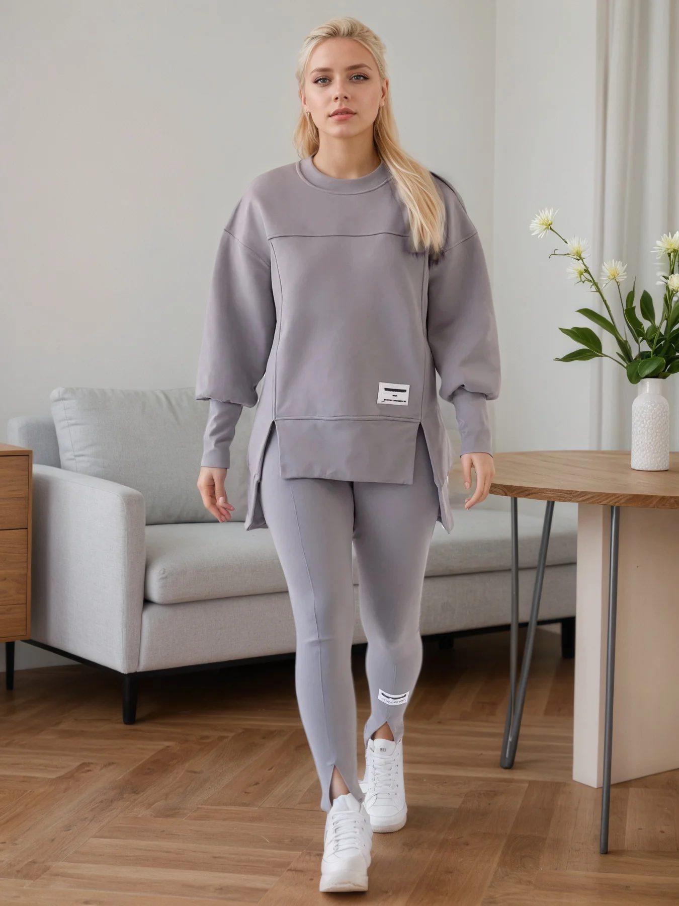 2025 New Women's Irregular Printed Two-Piece Set, Round Neck Hoodie and Slim Fit Pants, Machine Washable, Comfortable Version