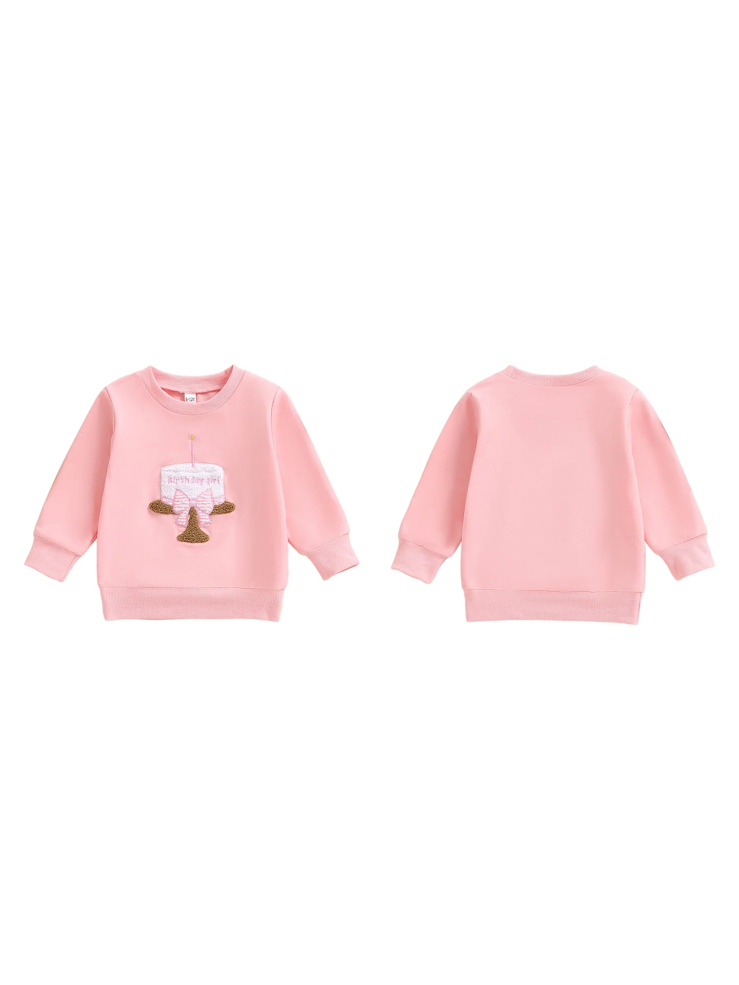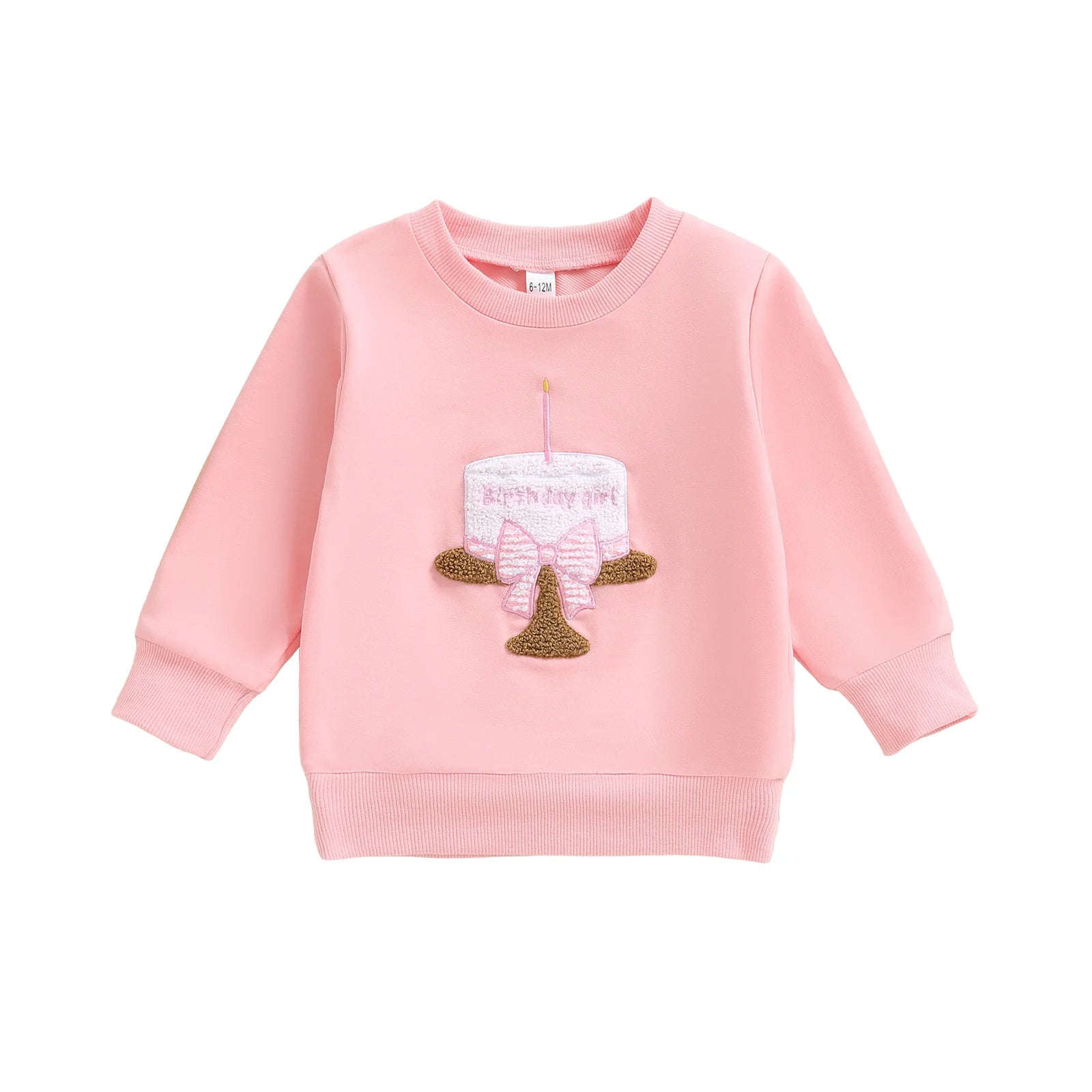 Toddler Baby Girls Birthday Sweatshirt Fashionable Long Sleeve Cake Embroidery Crew Neck Tops