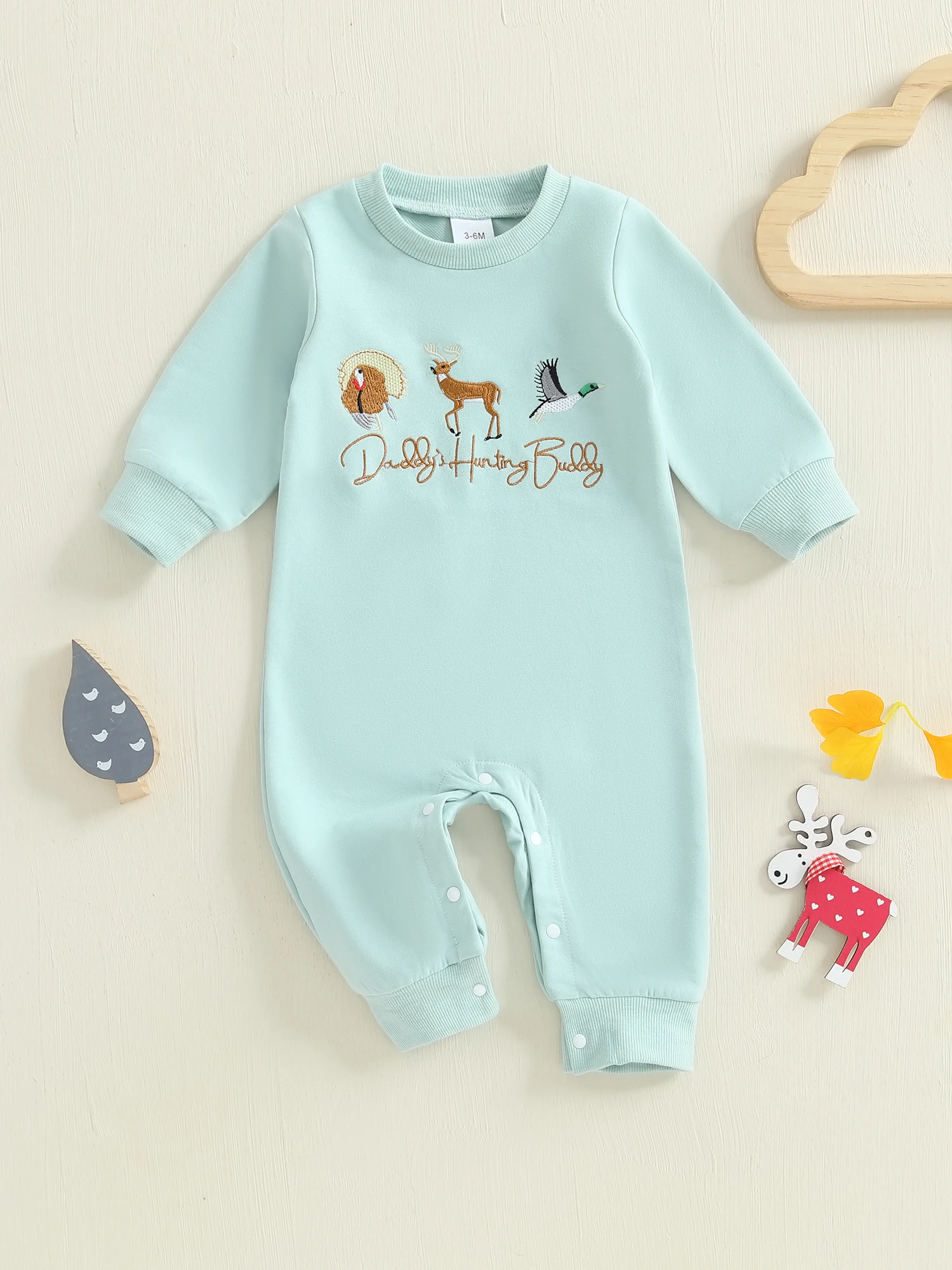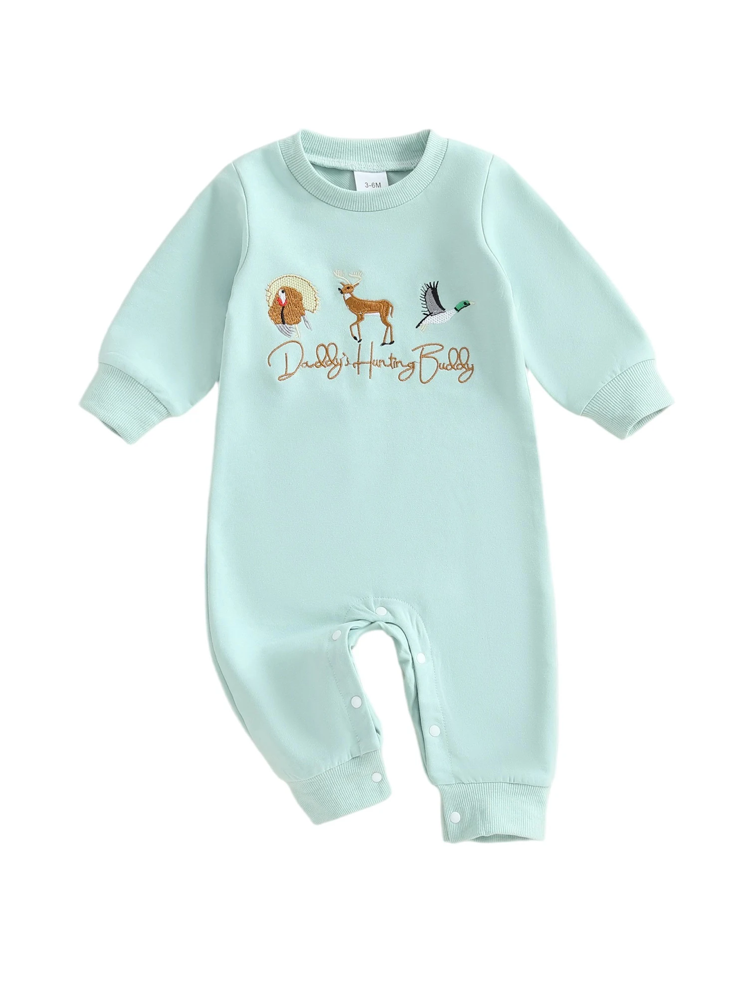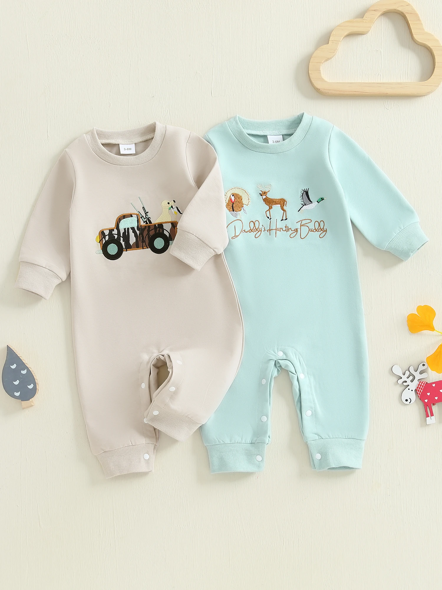 Baby Boy Fall Romper Loose Fit Animal/Truck Embroidered Crew Neck Long Sleeve Infant Boy Jumpsuit