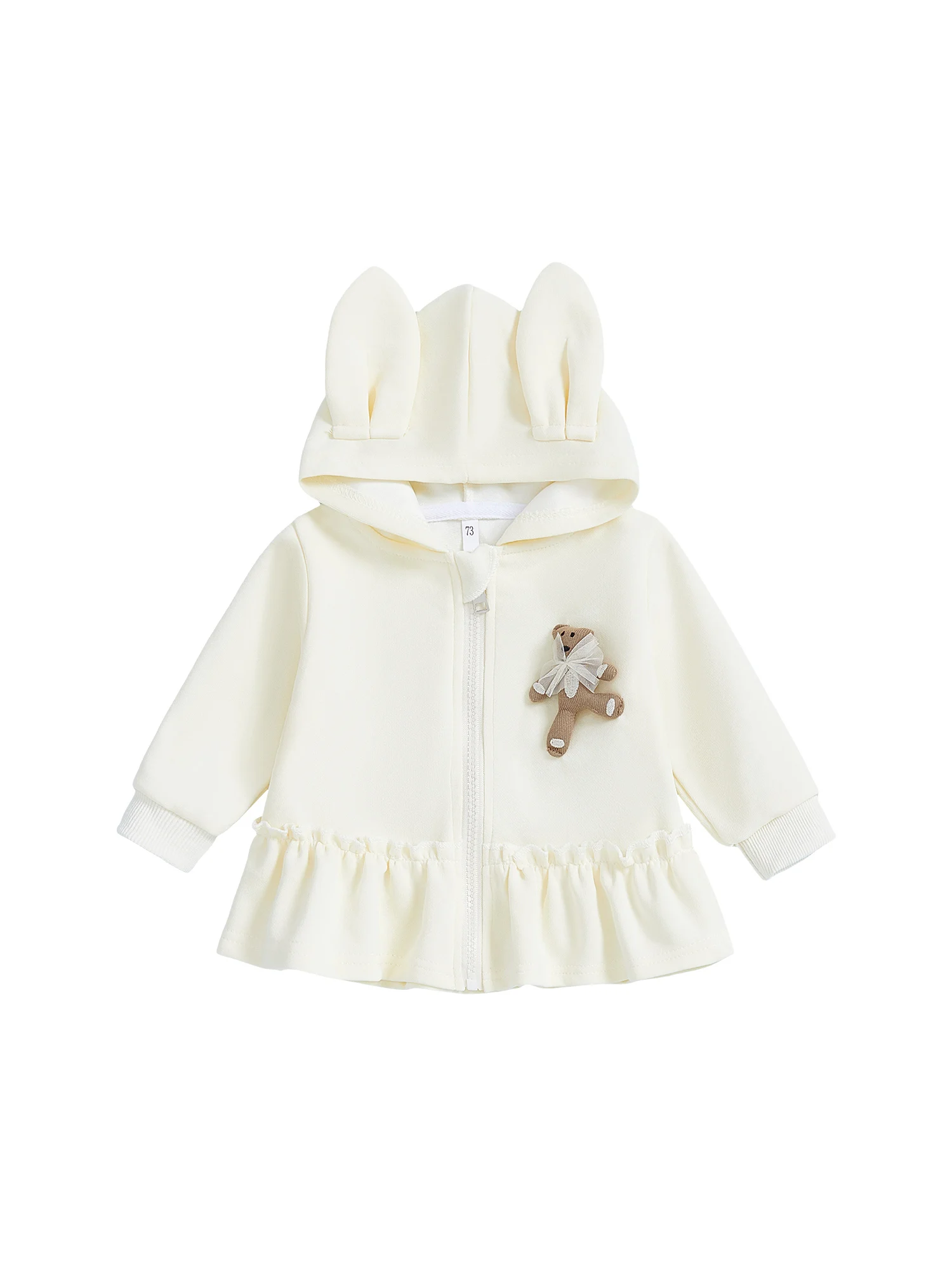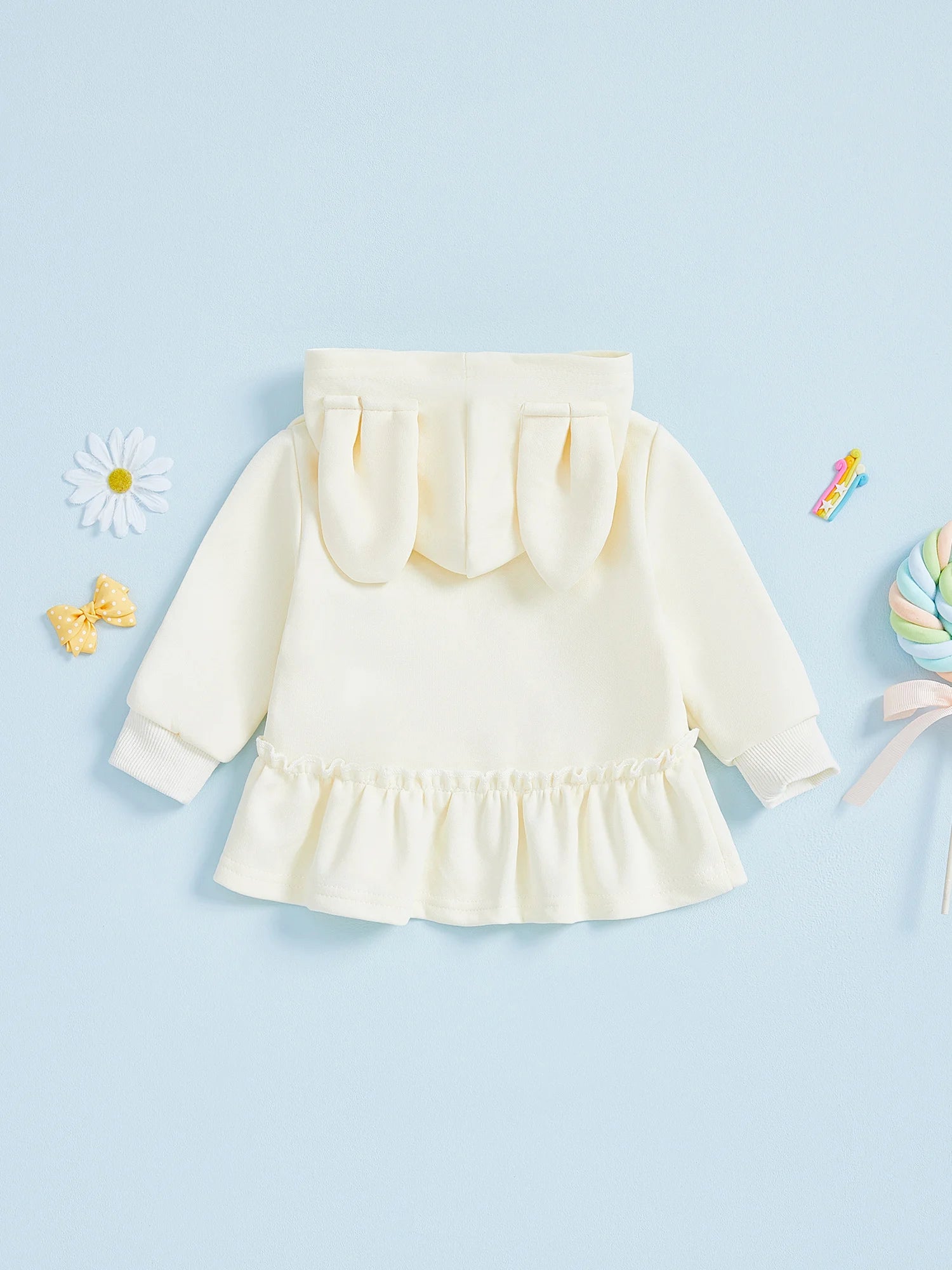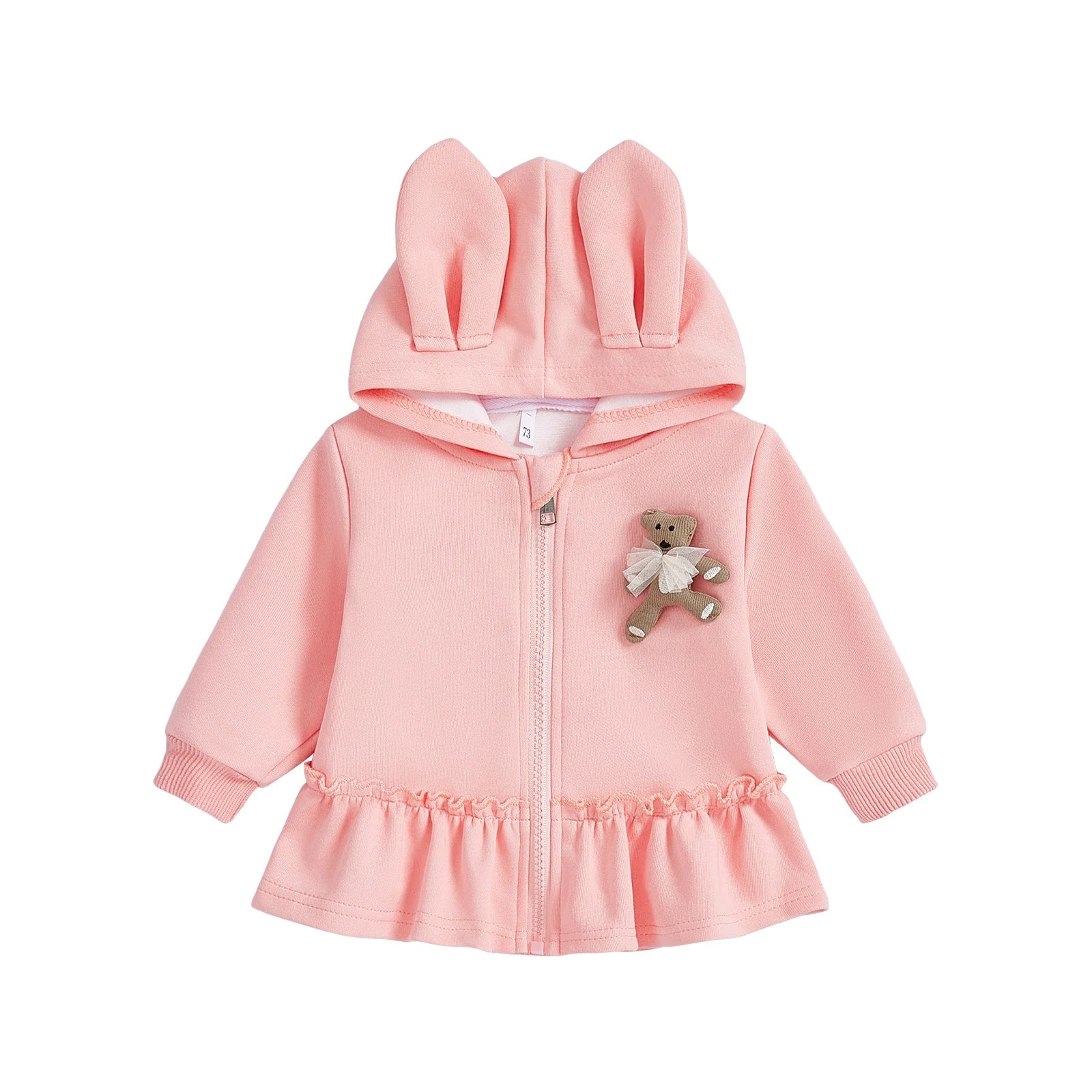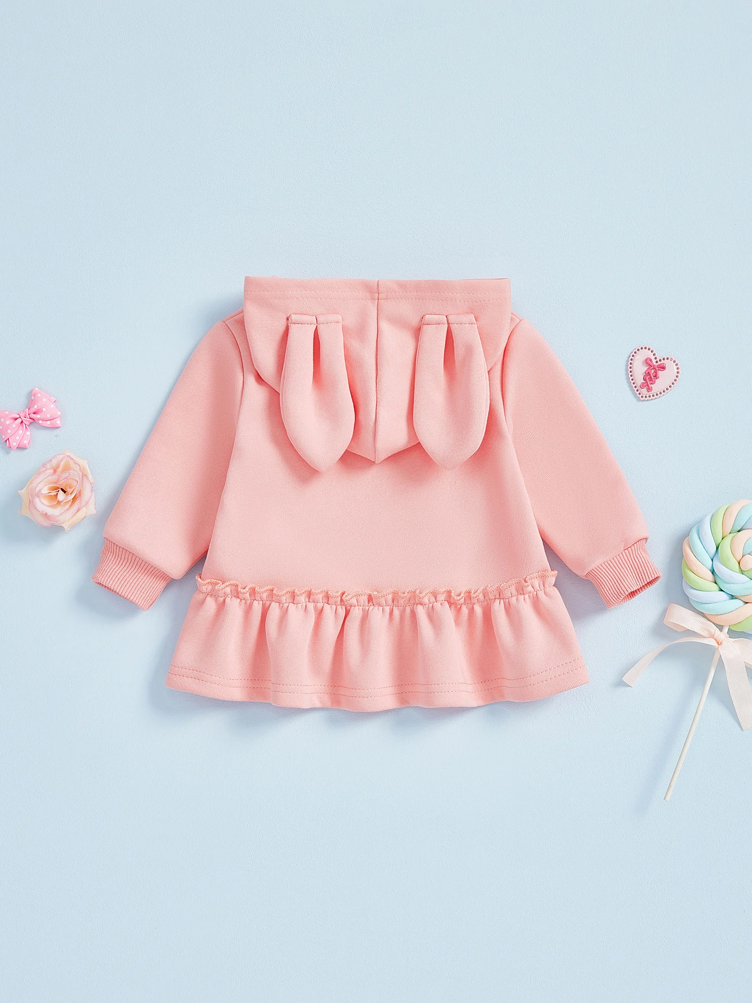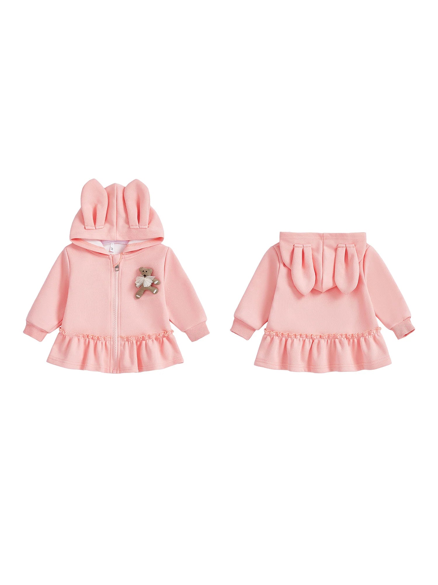 Toddler Girl Fall Jacket Long Sleeve Zip Up Ruffled Hem Hood Coat Cute Stuffef Animal Decor Warm Clothes
