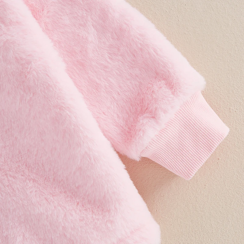 Little Girl Fuzzy Coat Cute Animal Long Sleeve Zipper Front Hood Jacket Fleece Outwear for Winter