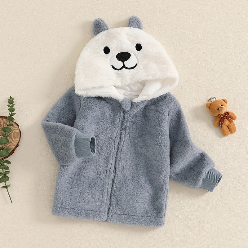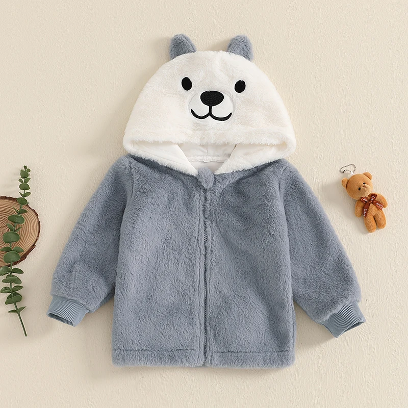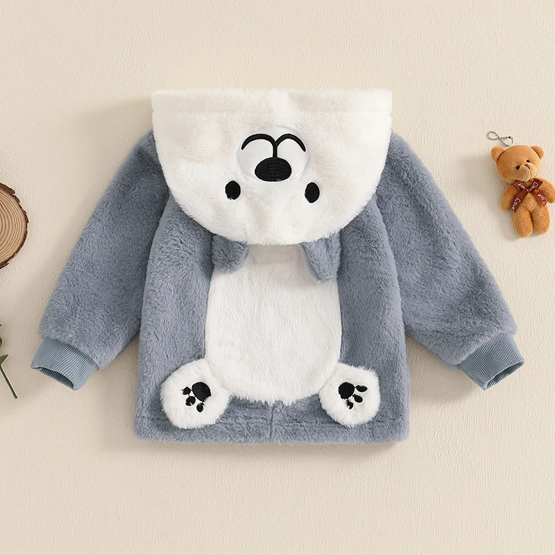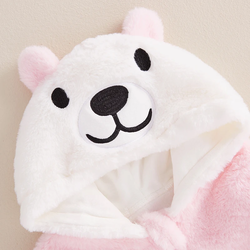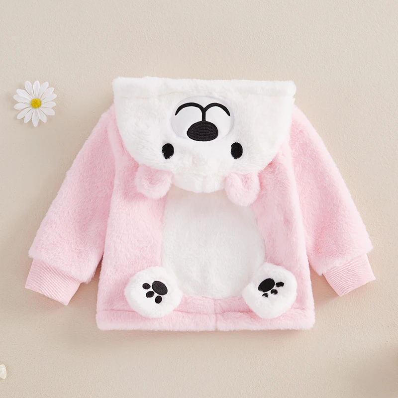 Adorable Toddler Plush Jacket Warm Winter Coat with Hood Zipper Front Fleece Outfit for Girls Cute Animal Design