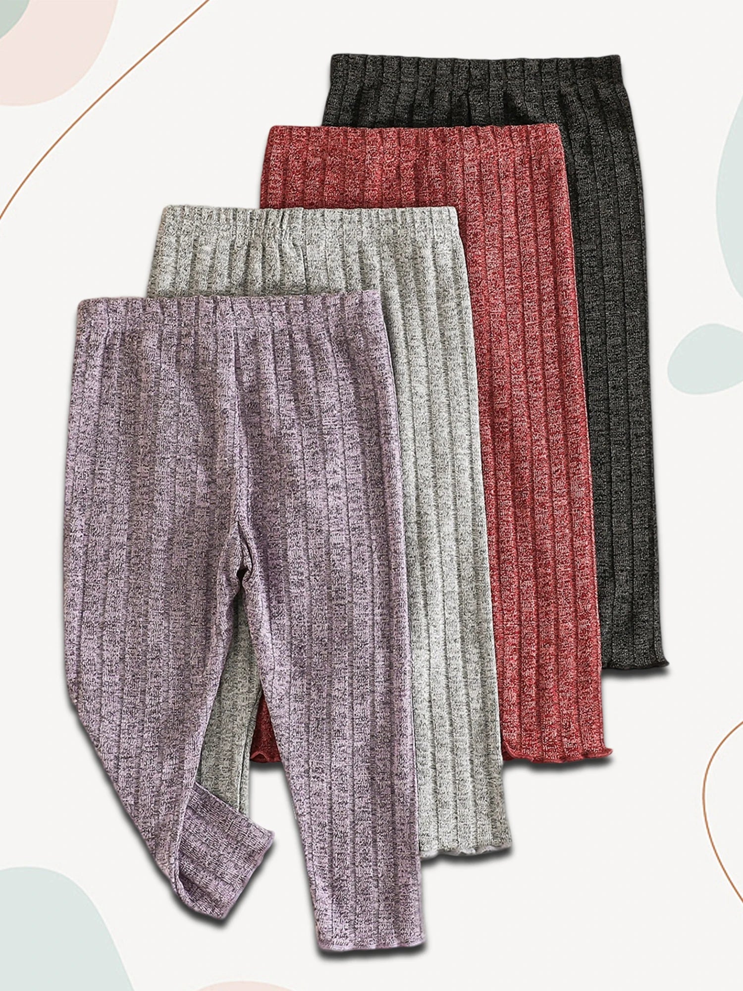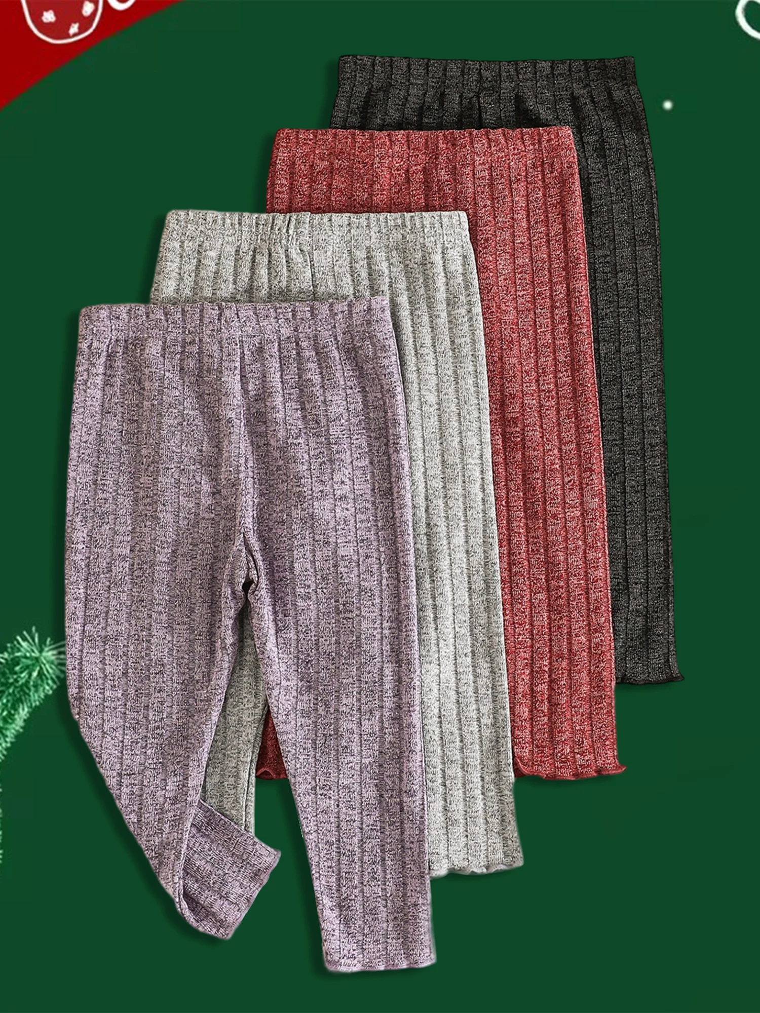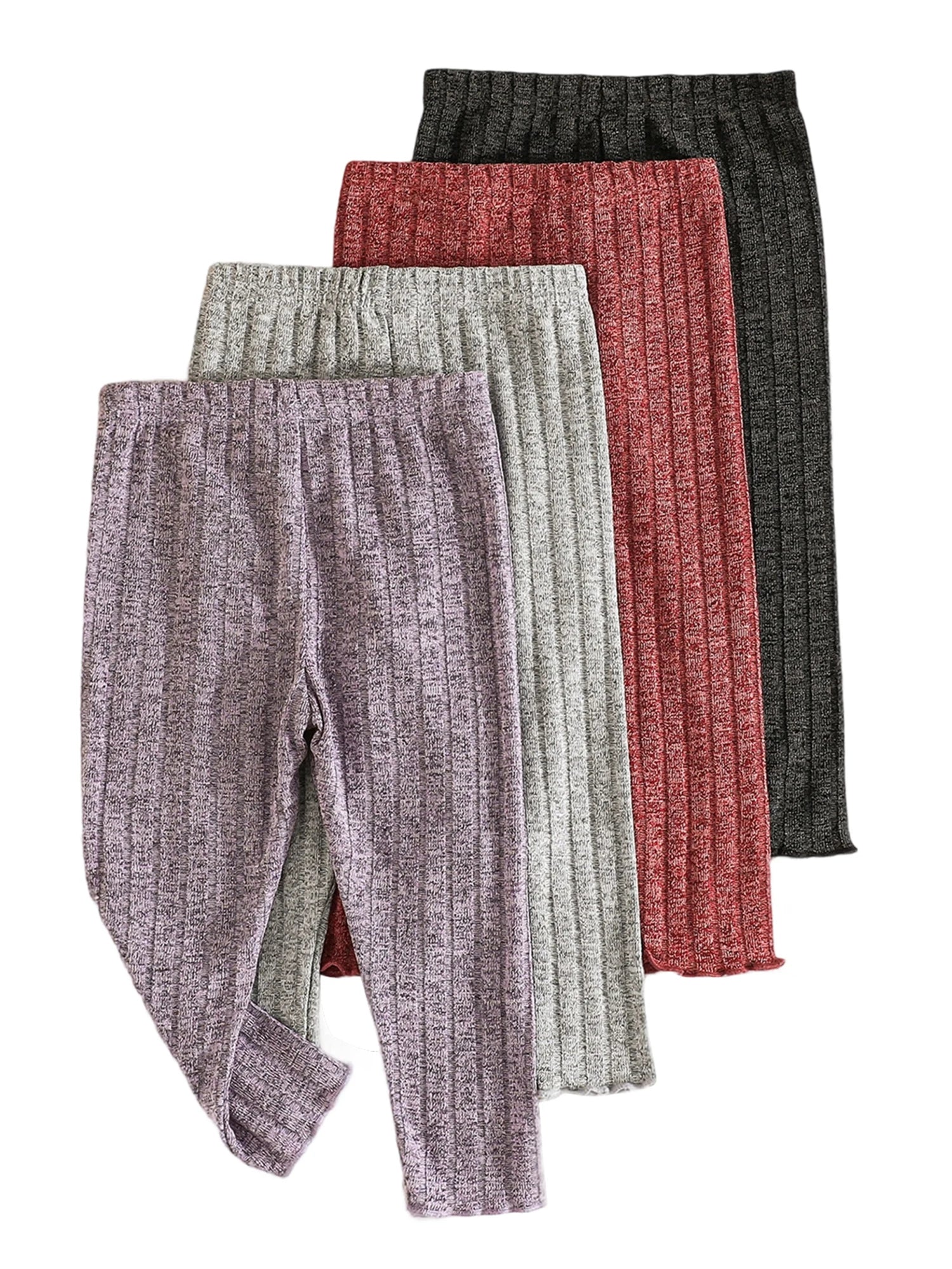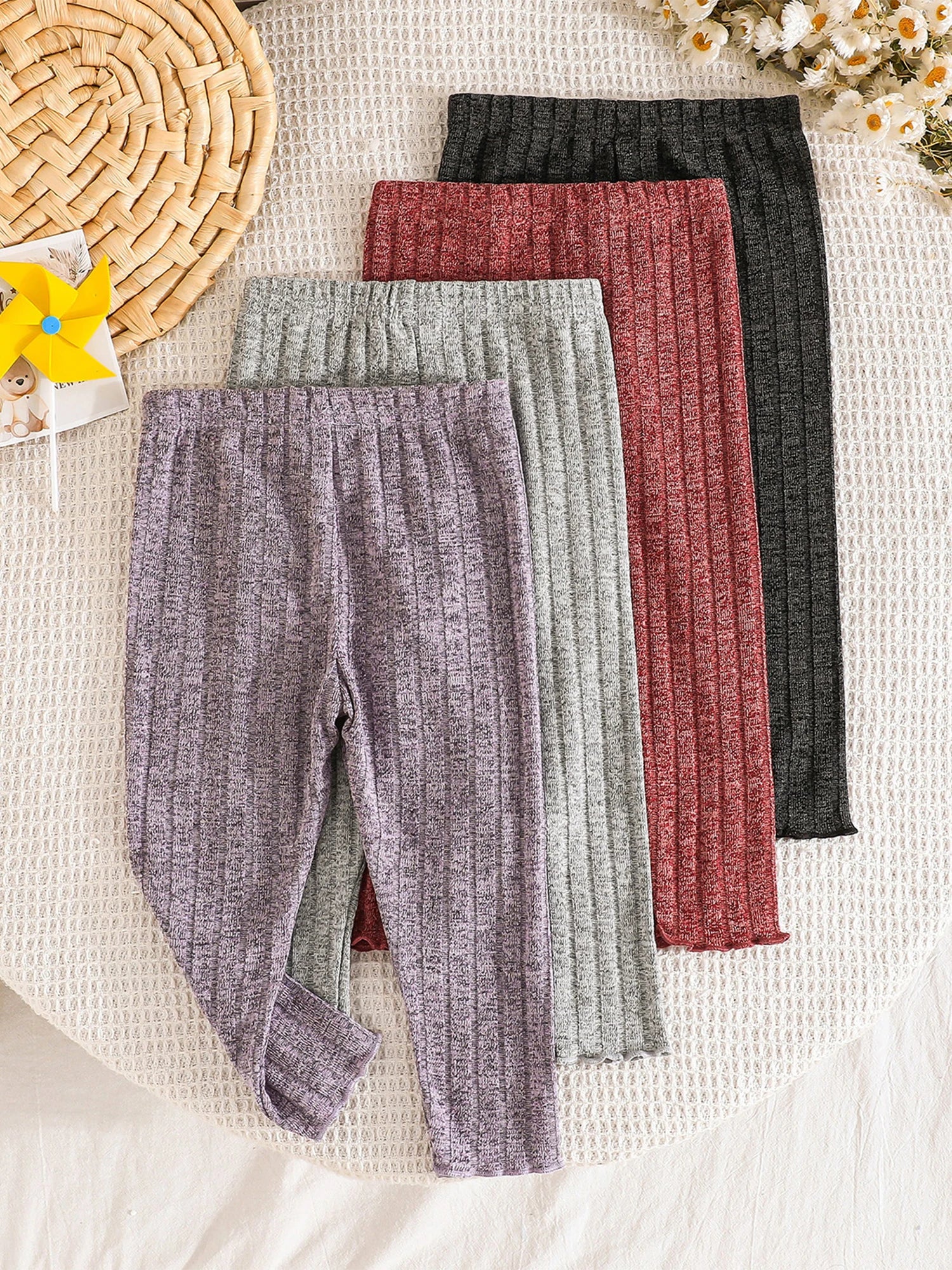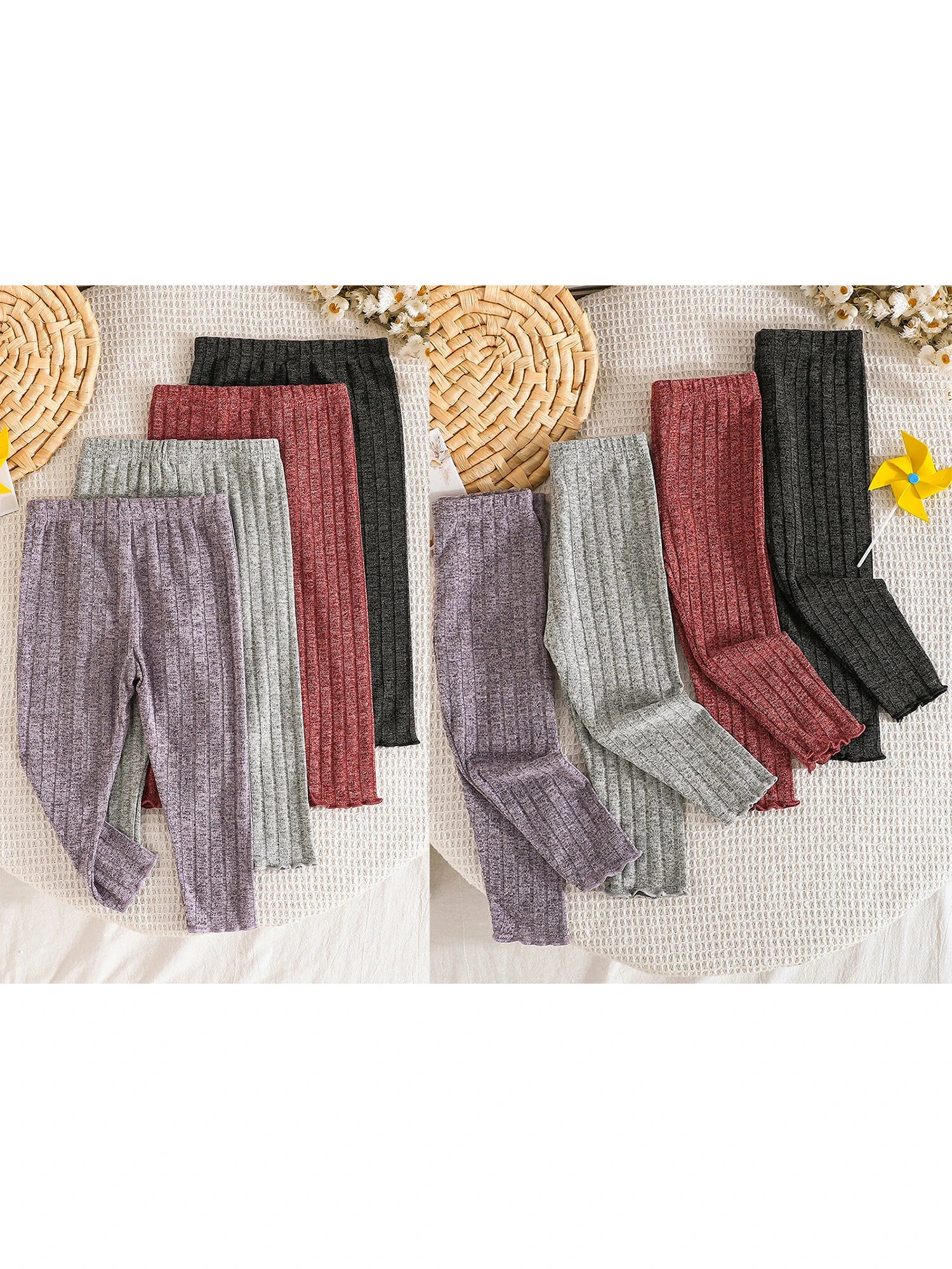 Toddler Baby Girls Ribbed Leggings Fashionable Solid Color Stretch Comfortable Bottoms
