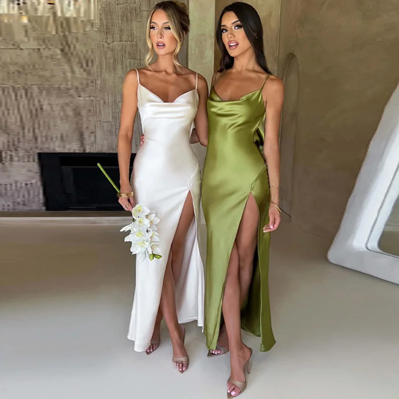 Summer Backless Slim Fit Slit Suspender Dress Fashionable Sexy New Arrival Women's Clothing