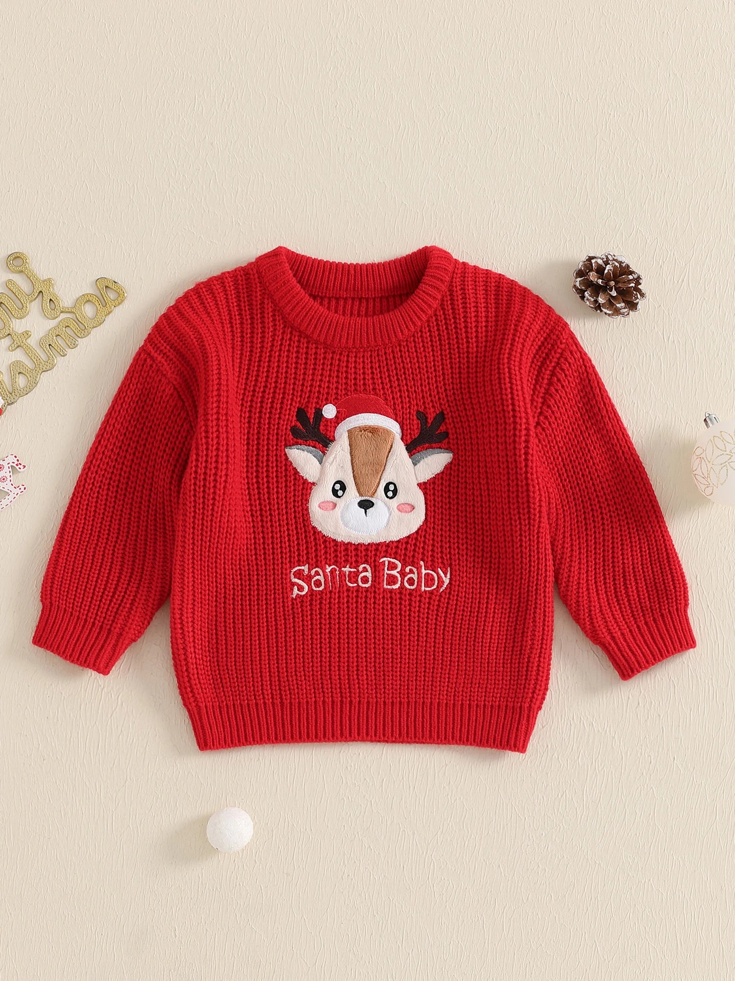 Baby Christmas Sweater, Long Sleeve Crew Neck Deer Letters Warm Knit Pullover Winter Tops