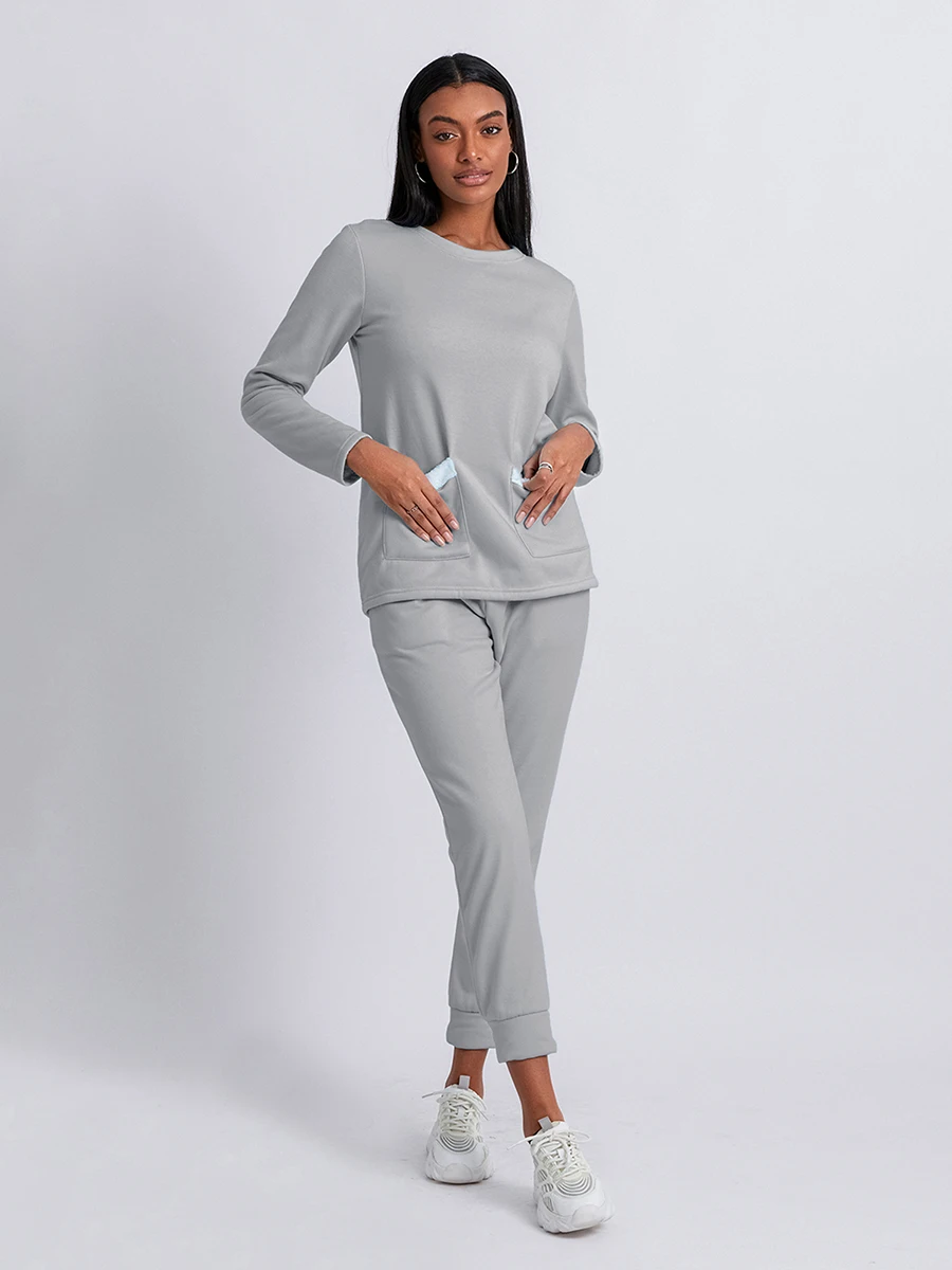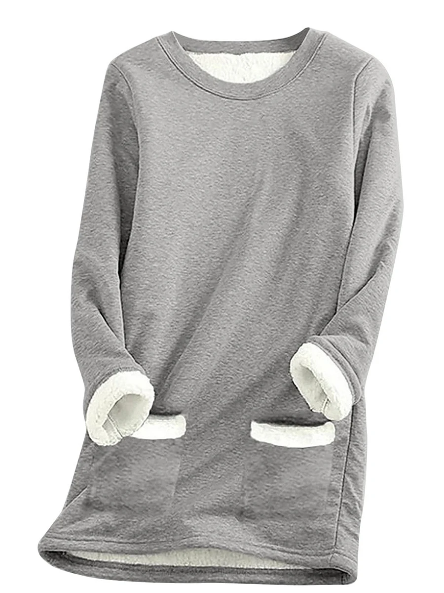 Solid color, fleece-lined, women's sweatshirt features long sleeves, a crew neck and 2 pockets to make your body proportions look perfect, and breathable fabric keeps you comfortable during your workout.
