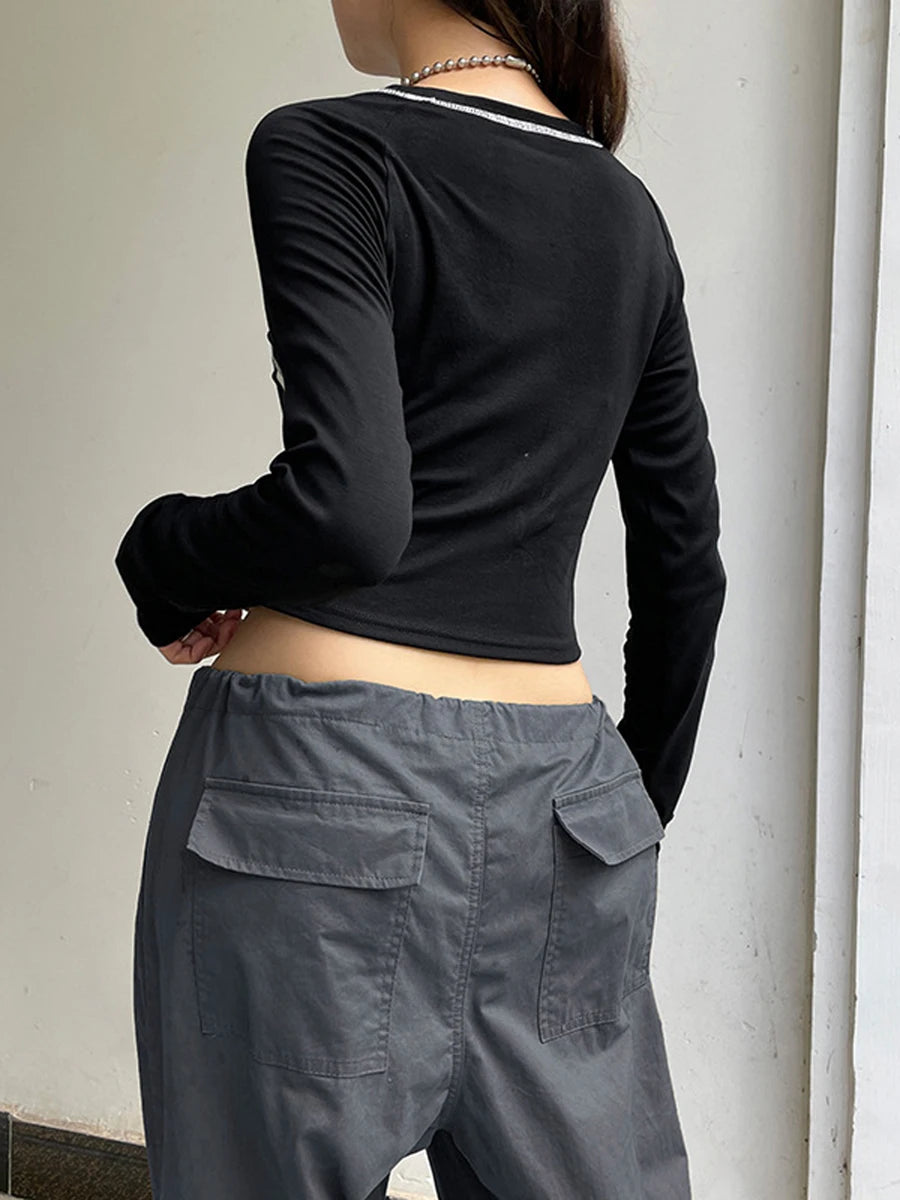 Women's Crew Neck Tops Fashion Letter Print Long Sleeve Fit T-Shirt Casual Blouse Streetwear