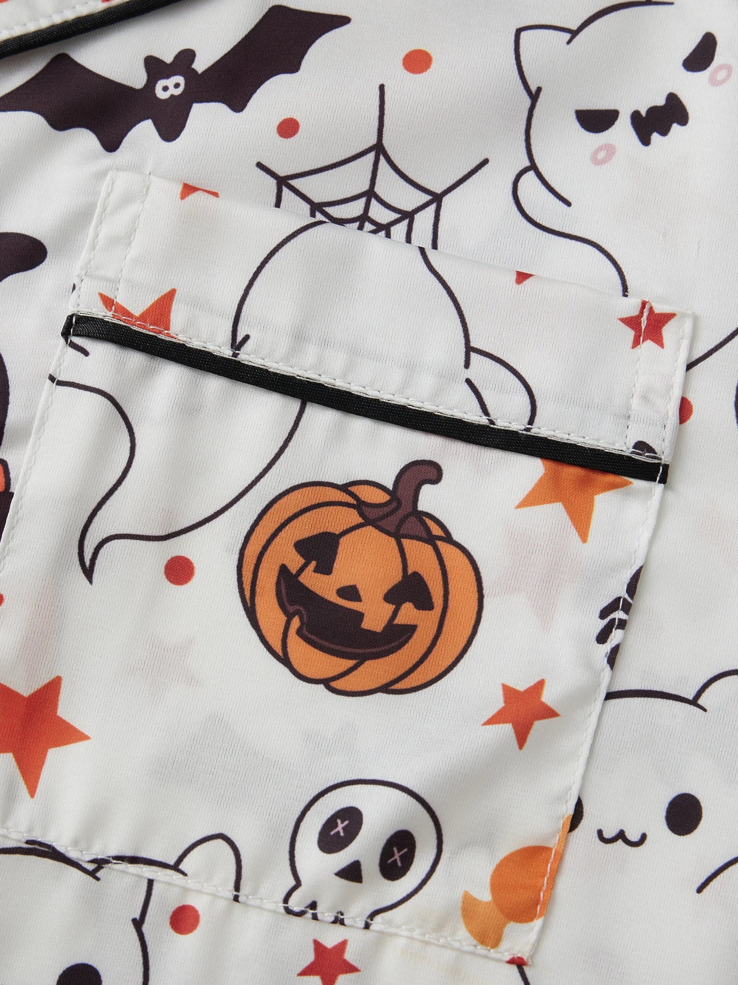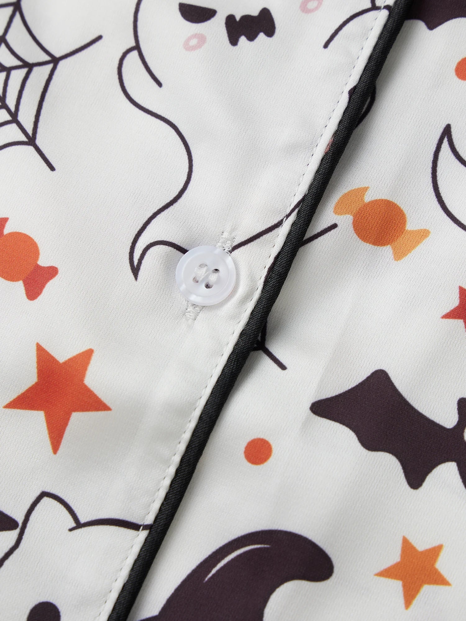 Women s Silk Pajama Sets with Spooky Halloween Prints Lapel V Neck Short Sleeve Tops and Pants Cozy Sleepwear for Fall