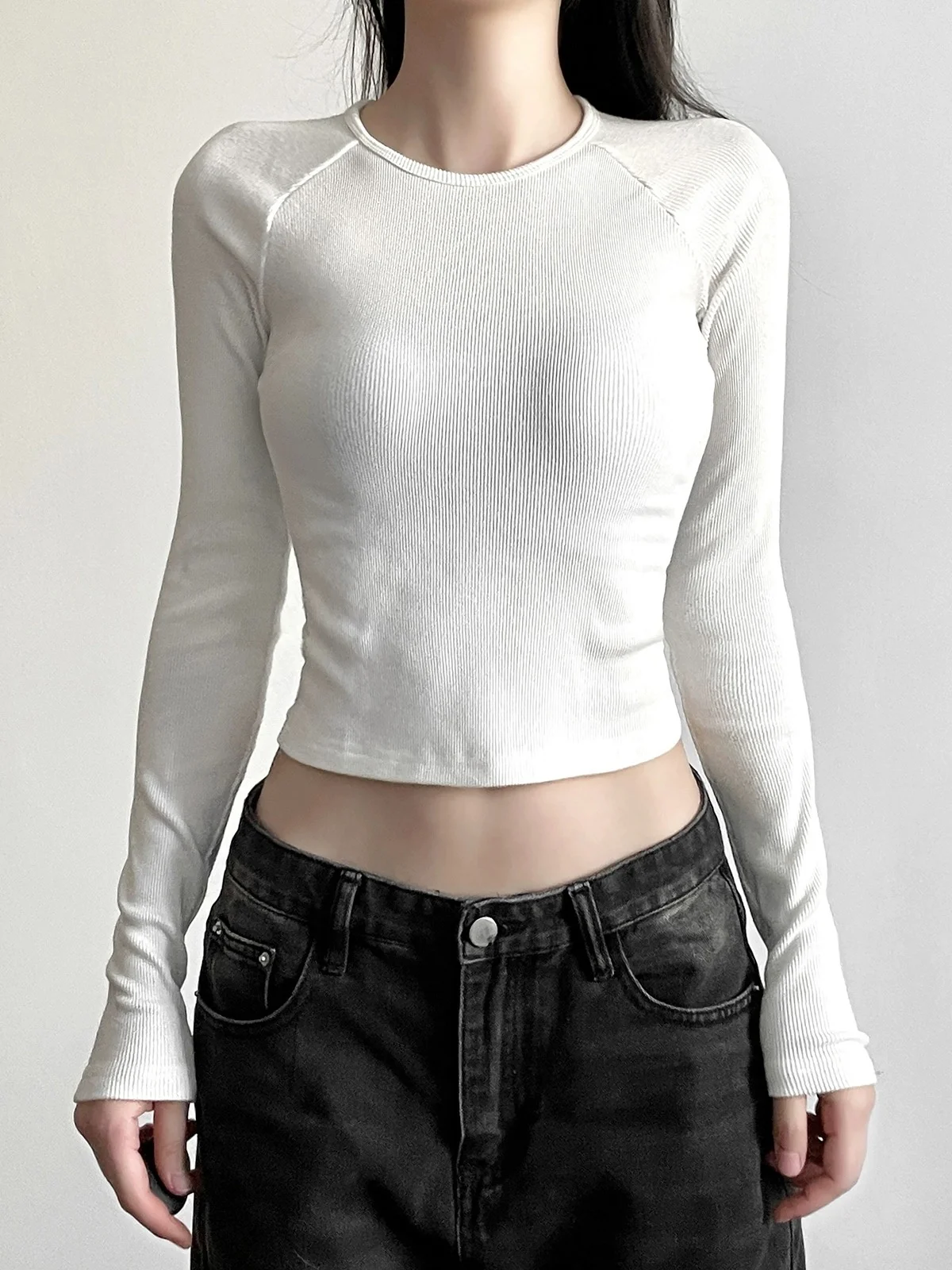 Y2K T-shirts Vintage Women O-neck Tee Long Sleeve Grunge Print Casual Crop Top Female Graphic Korean Fashion Streetwear Tops